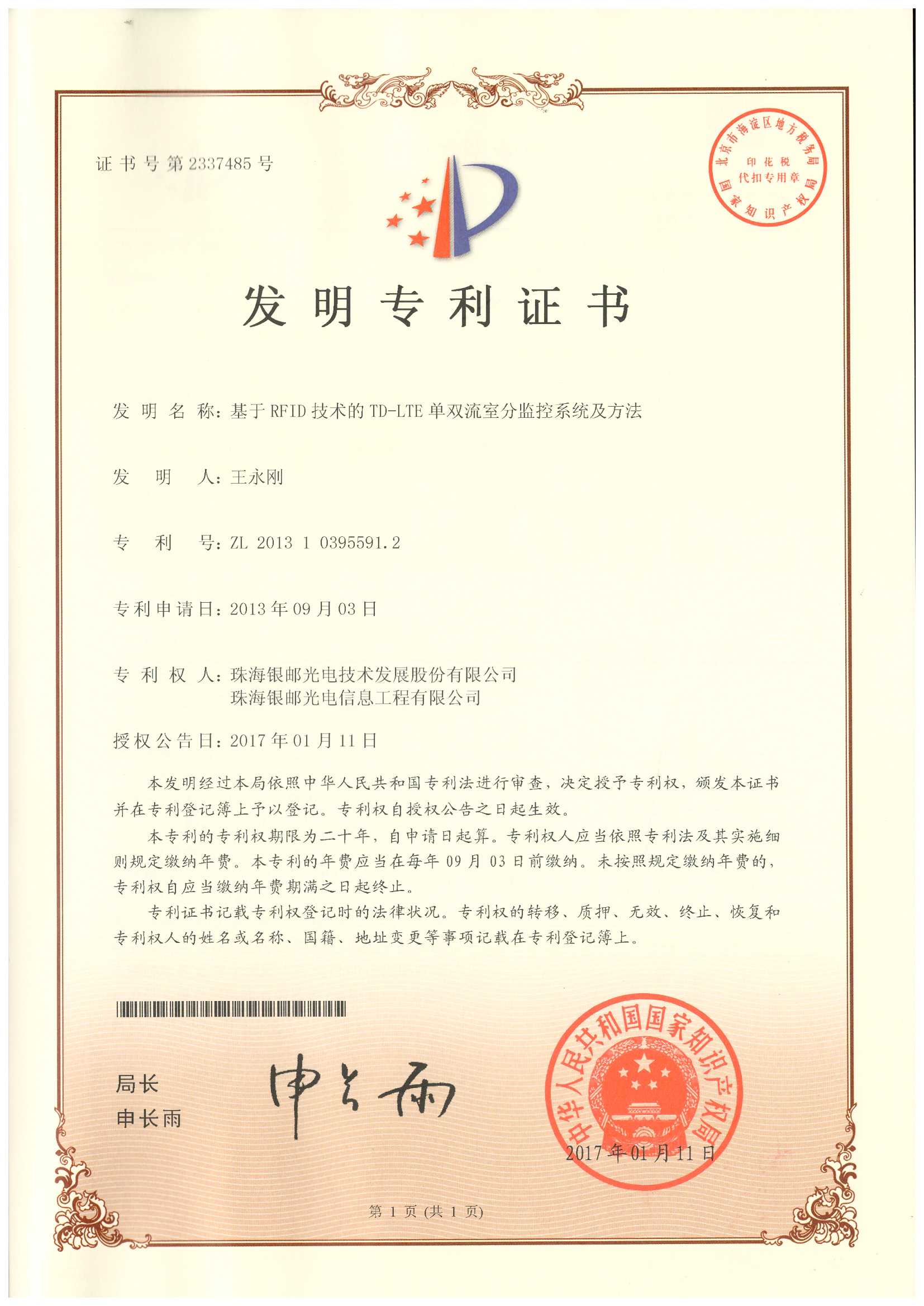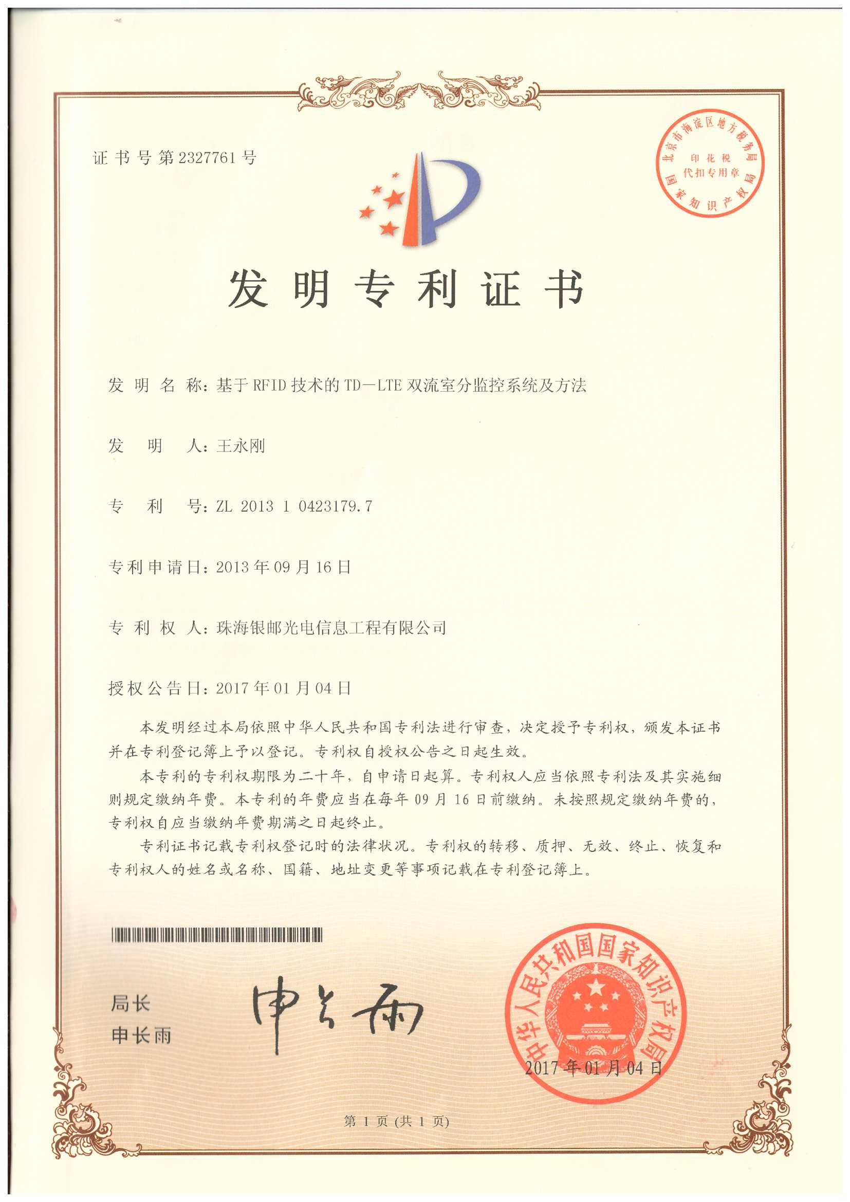 专利名称:基于RFID技术的TD-LTE双流室分监控系统及方法